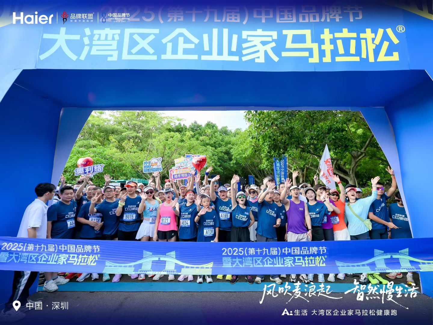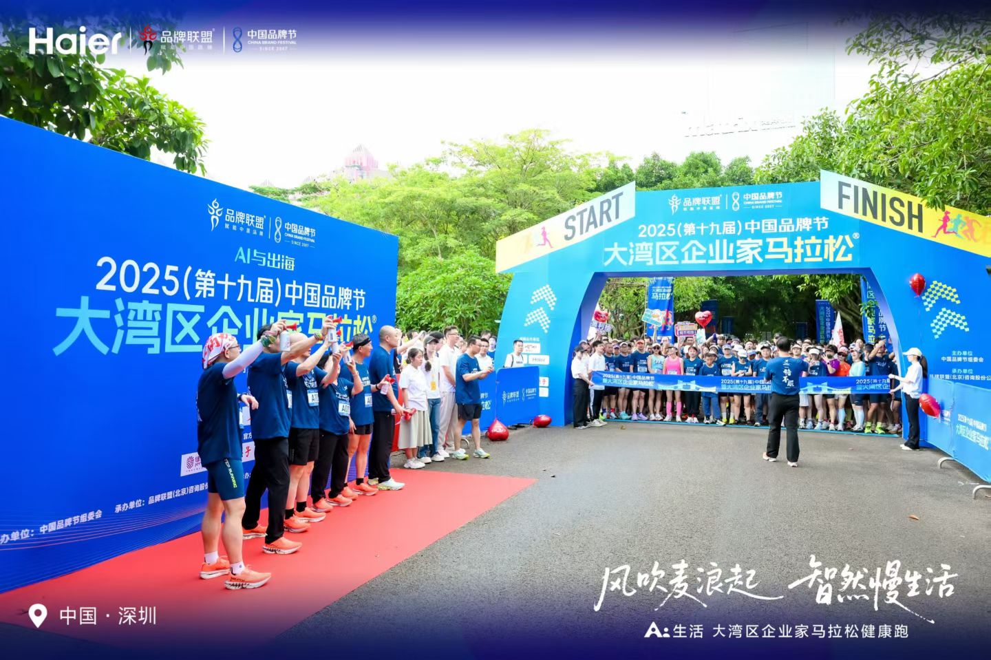 2025年,第十九届中国品牌节配套活动——大湾区企业家马拉松在深圳活力开跑。活动以“风吹麦浪起 智然慢生活”为主题,由海尔等品牌助力,汇聚大湾区企业家及运动爱好者,打造健康向上的品牌交流盛宴。